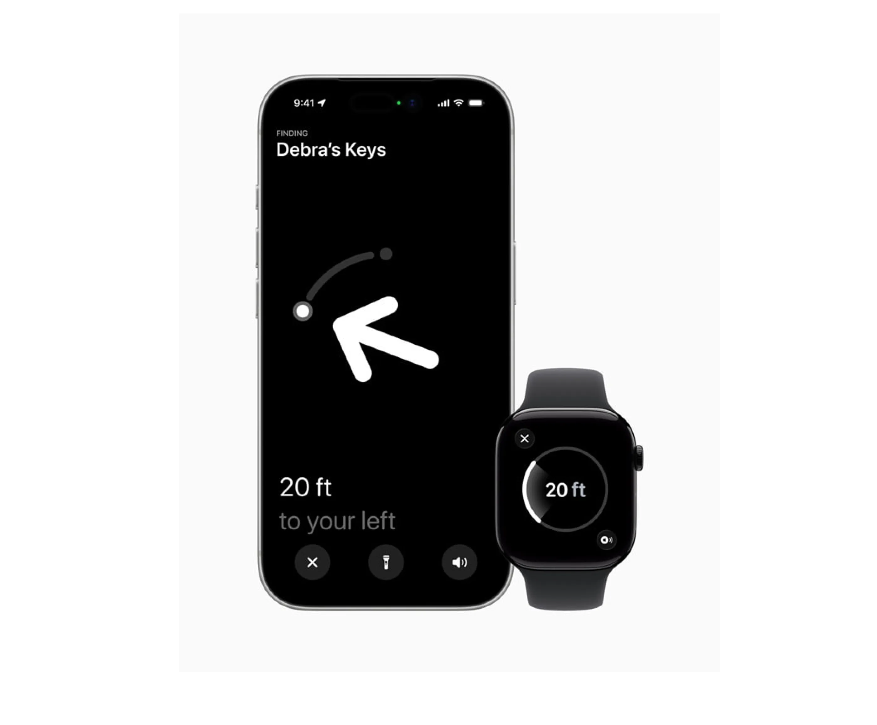 Além do iPhone, a função Precision Finding agora é compatível diretamente com modelos recentes do Apple Watch (Series 9 em diante e Ultra 2), permitindo localizar objetos diretamente pelo pulso, sem a necessidade de pegar o telefone.