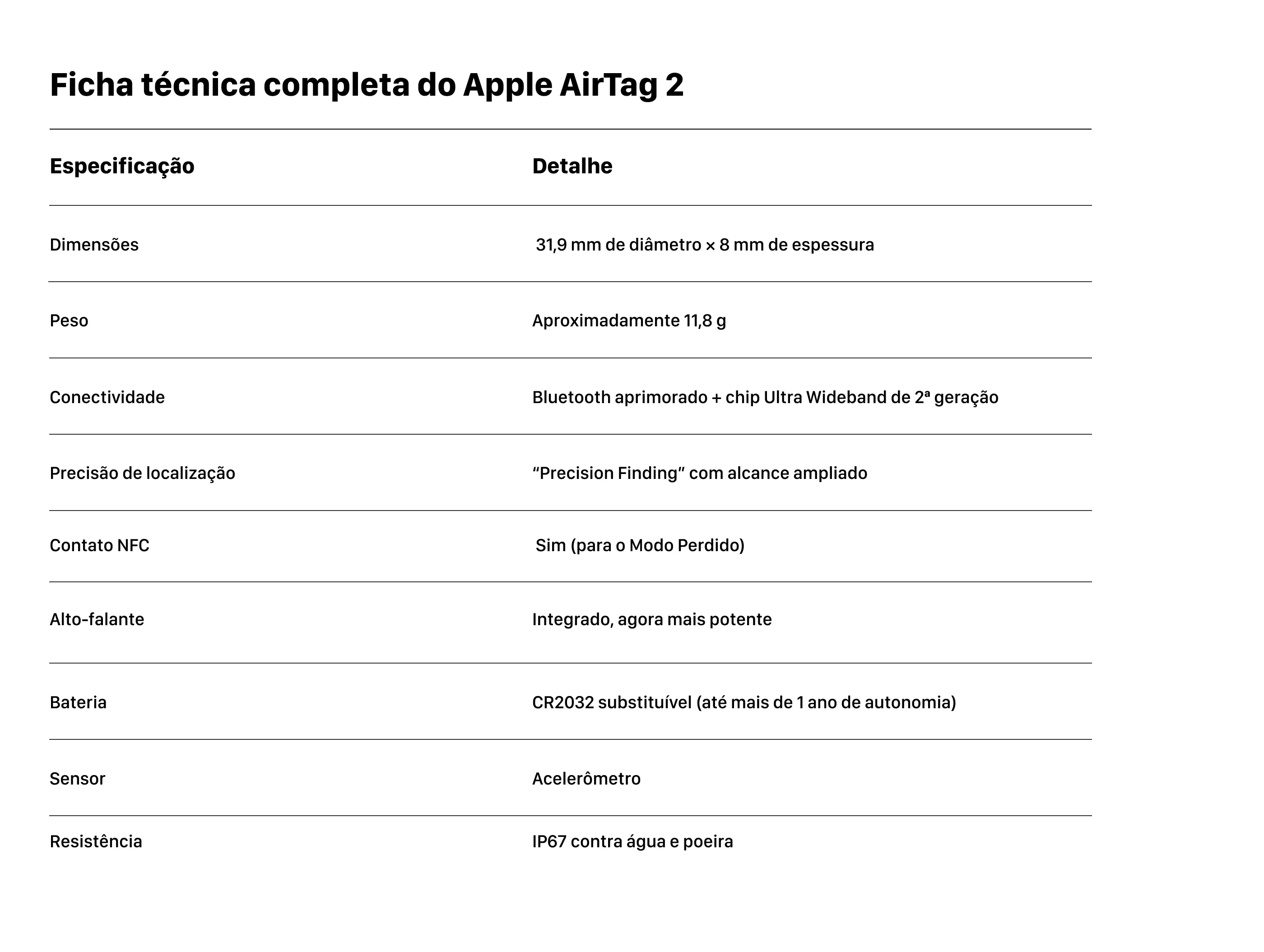 O AirTag 2 mantém o visual clássico do modelo anterior: