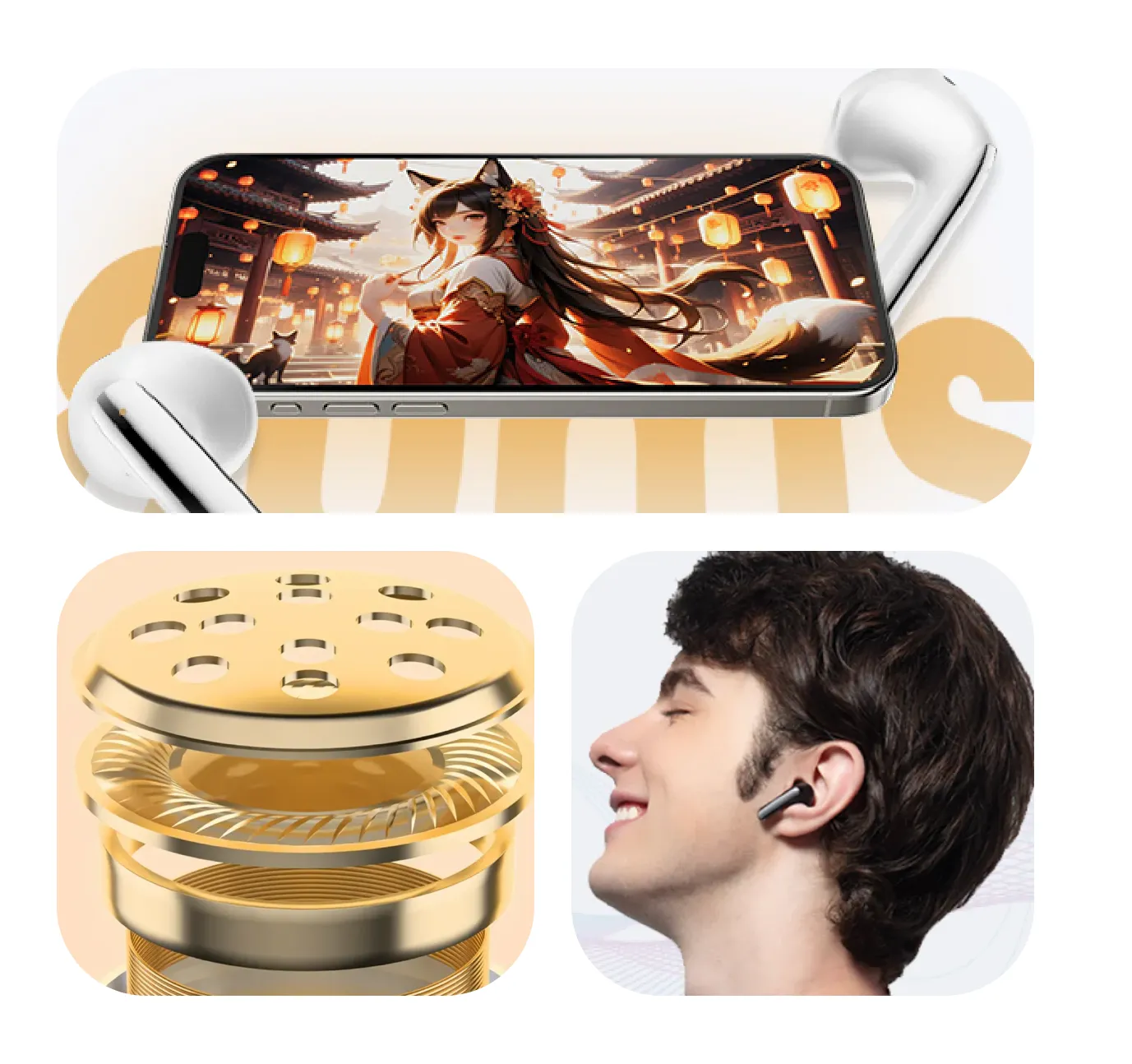 O QCY T13 oferece áudio estéreo com drivers dinâmicos de 7,2 mm, proporcionando som equilibrado com graves consistentes e boa definição para músicas, vídeos e chamadas. O design intra-auricular garante encaixe confortável para uso prolongado e facilita o isolamento passivo de ruídos externos.