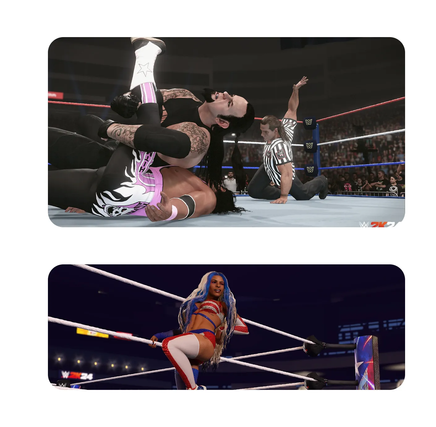 Graças a essas mecânicas, WWE 2K24 oferece uma experiência completa que combina ação, estratégia e criatividade, permitindo que cada jogador viva sua própria história dentro do universo da WWE.