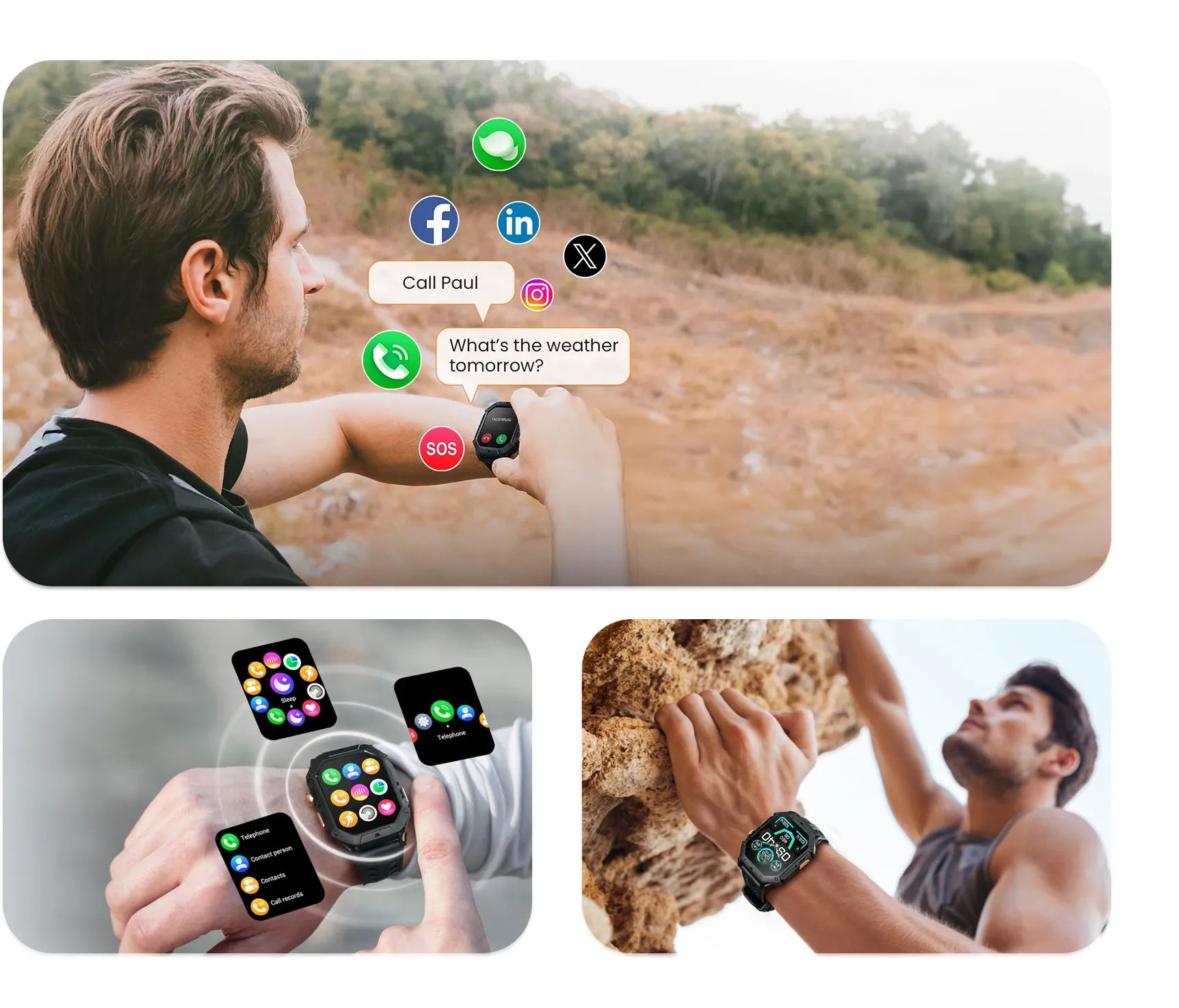 Projetado com foco em durabilidade, o smartwatch possui estrutura metálica robusta, testada em condições adversas como impacto, vibração e variações de temperatura.