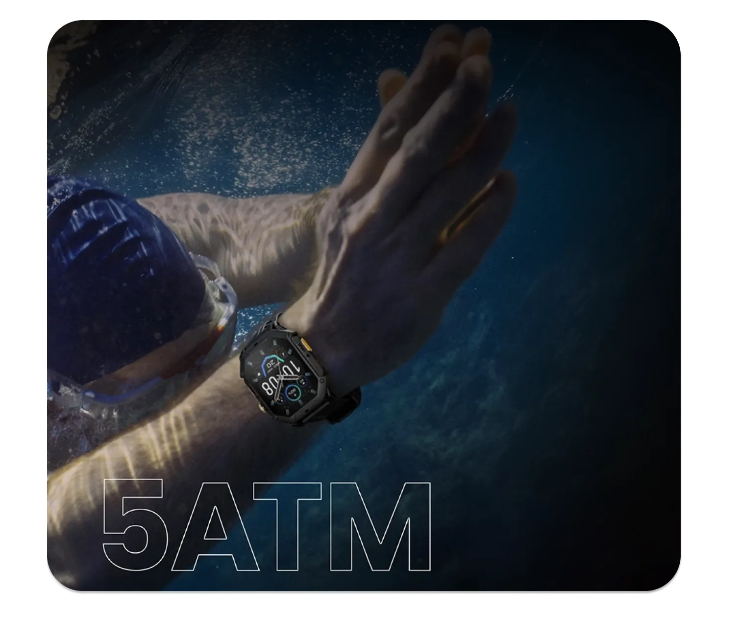 Além disso, sua resistência à água de até 5ATM permite o uso em chuva, lavagem das mãos e atividades aquáticas leves, como natação.