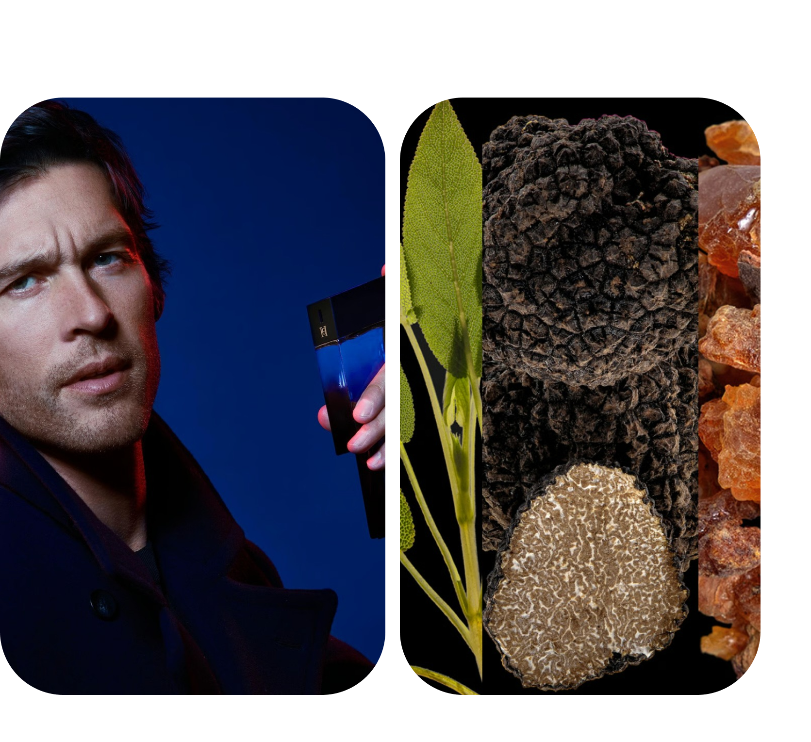 - Notas de coração: Trufa Negra e Madeiras Resinosas