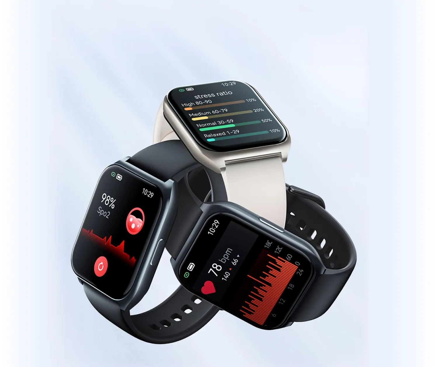Equipado com sensores integrados, o smartwatch realiza monitoramento contínuo da saúde, acompanhando indicadores essenciais como: