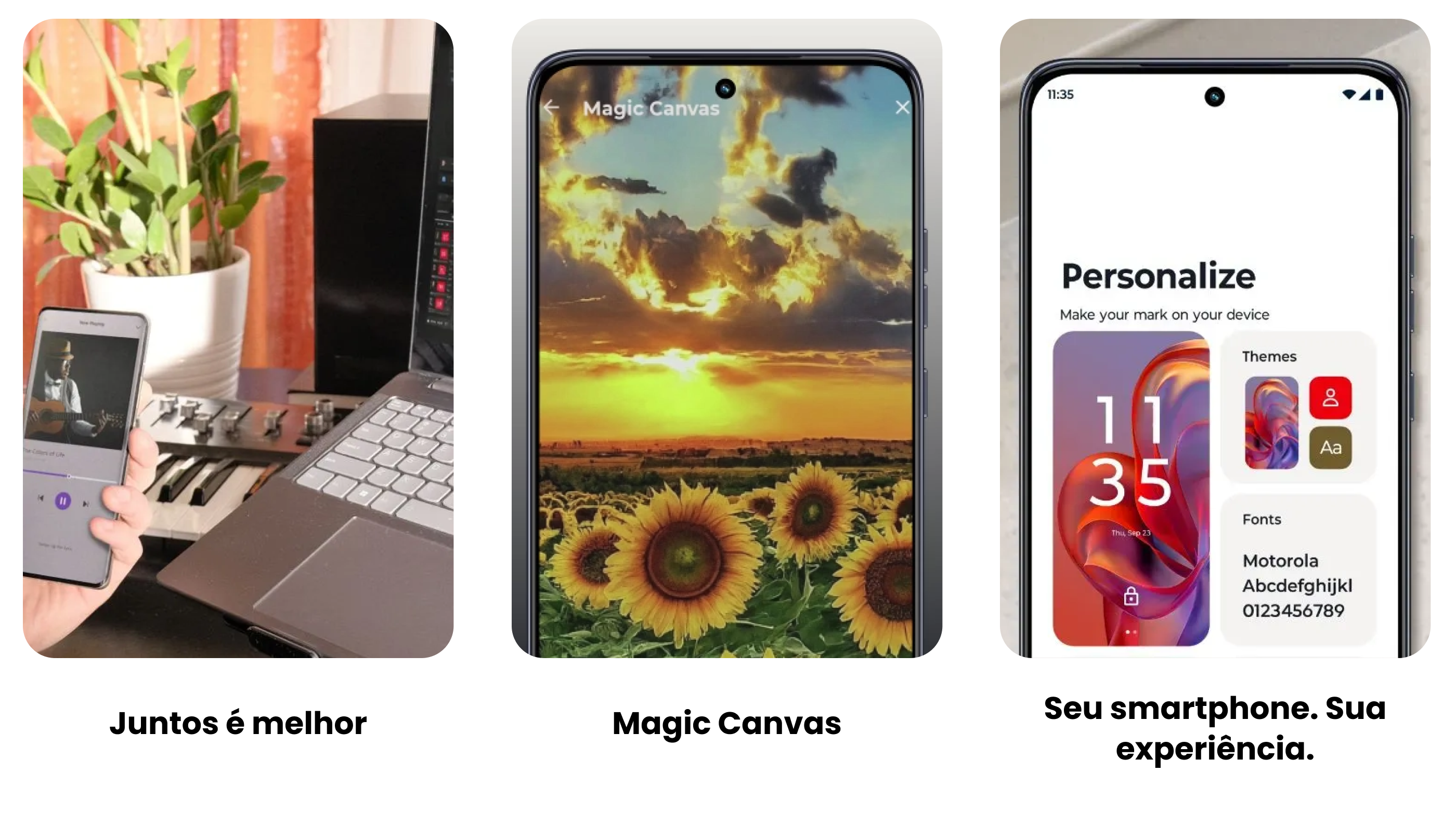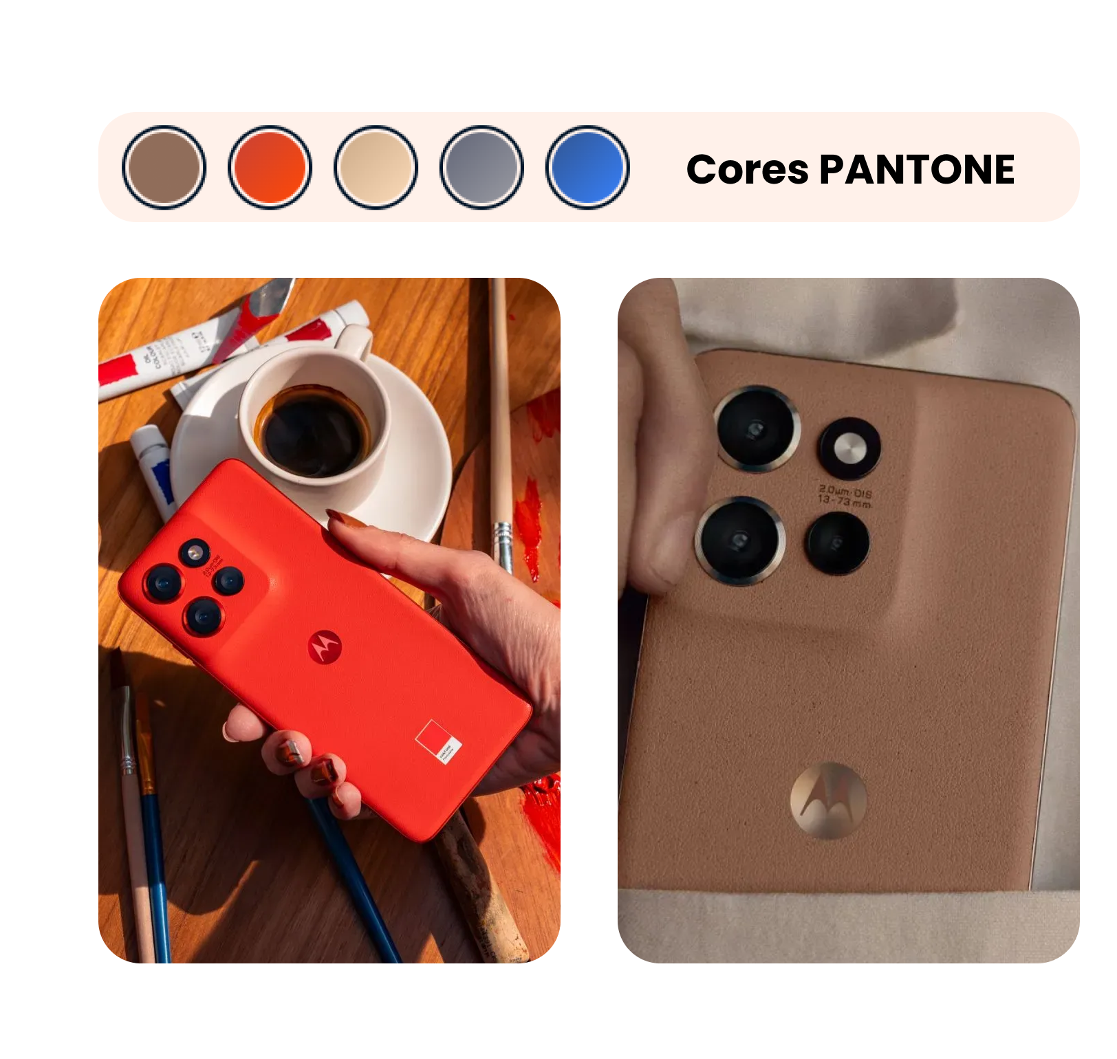 Maratone seus conteúdos favoritos, faça videochamadas com os amigos por horas e jogue sem interrupções — tudo isso graças à poderosa bateria de 4310 mAh, que oferece mais de 34 horas de autonomia⁵. Recarregue para um dia inteiro de uso em apenas 11 minutos com o carregamento TurboPower™ de 68 W. E se preferir praticidade, conte também com o carregamento sem fio TurboPower™ de 15 W, sem precisar lidar com cabos.