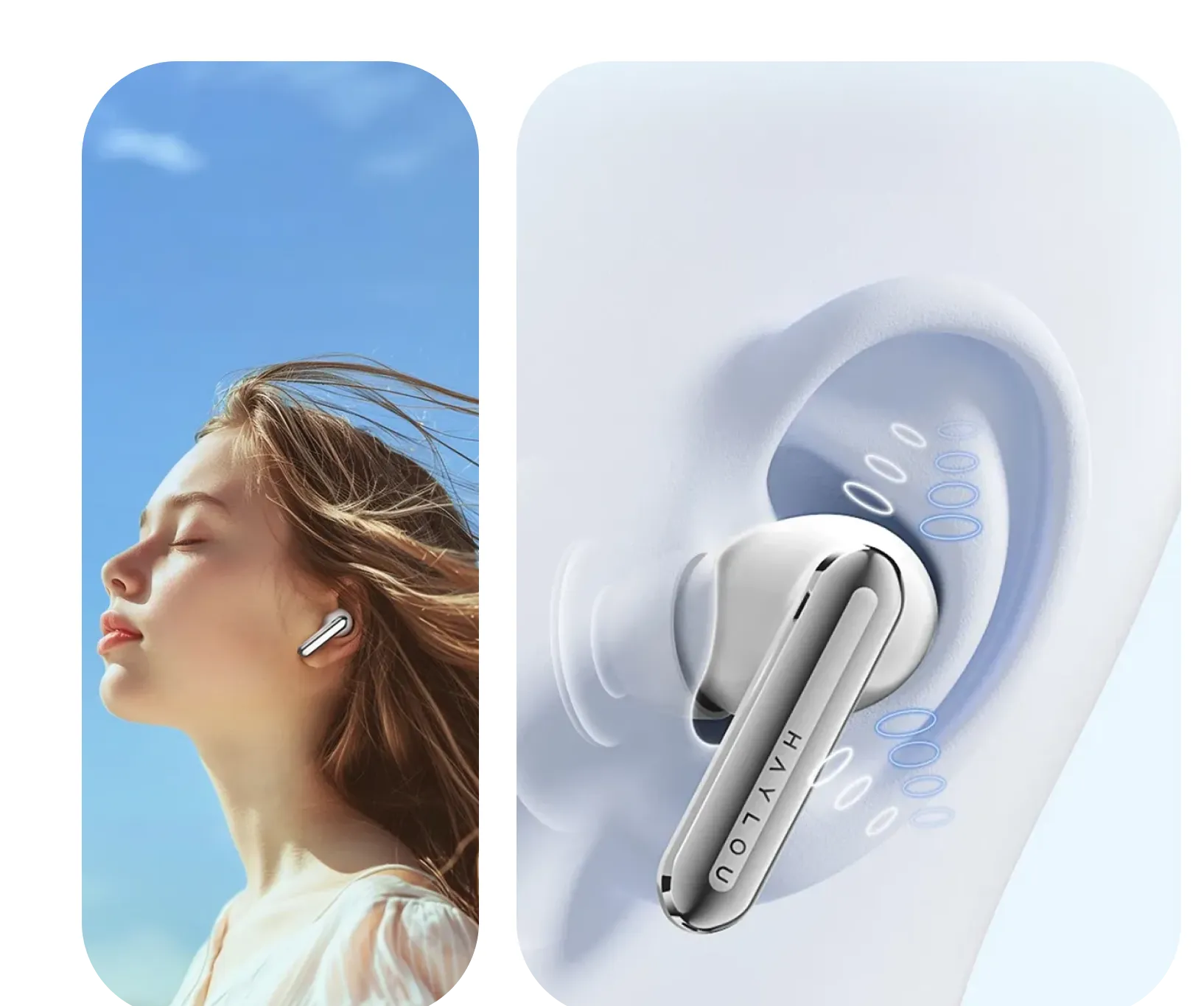 O conjunto de 6 microfones com processamento de redução de ruído ambiental (três em cada fone) otimiza a captação da voz em chamadas, reduzindo ruídos externos mesmo em ambientes ao ar livre ou com vento. O app Haylou Sound permite personalizar modos de cancelamento de ruído, ajustar equalizações (EQ) para diferentes estilos musicais e alternar entre modos como Transparência, ANC ativo e desligado conforme seu ambiente.