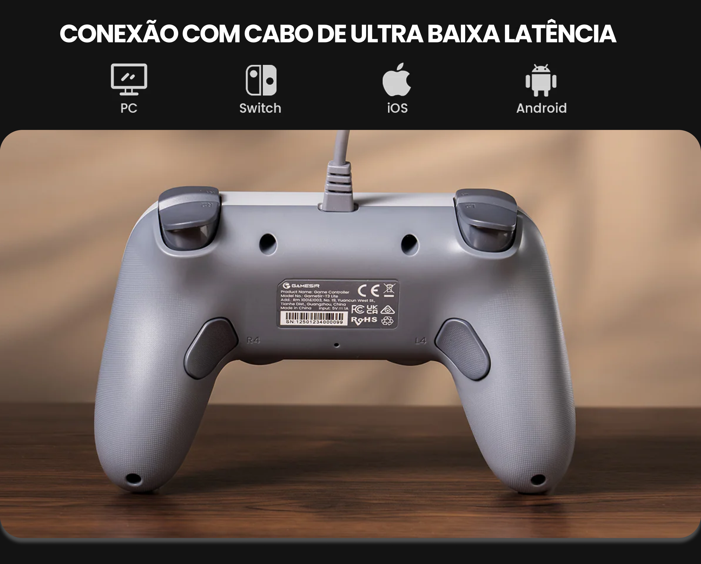 Conta com conexão com fio de ultra baixa latência e taxa de polling de 1000 Hz, garantindo uma resposta rápida e precisa. Seus joysticks com efeito Hall GameSir™ eliminam o drift e aumentam a durabilidade.
