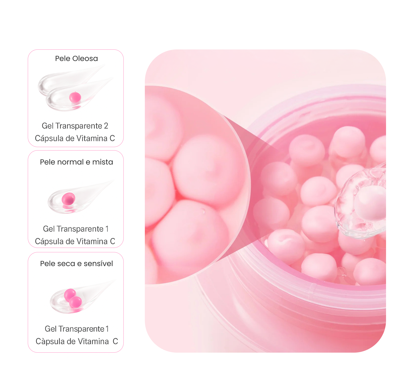 Para uma sensação mais leve, aumente a quantidade de gel; para maior hidratação e elasticidade, aumente a proporção de cápsulas.