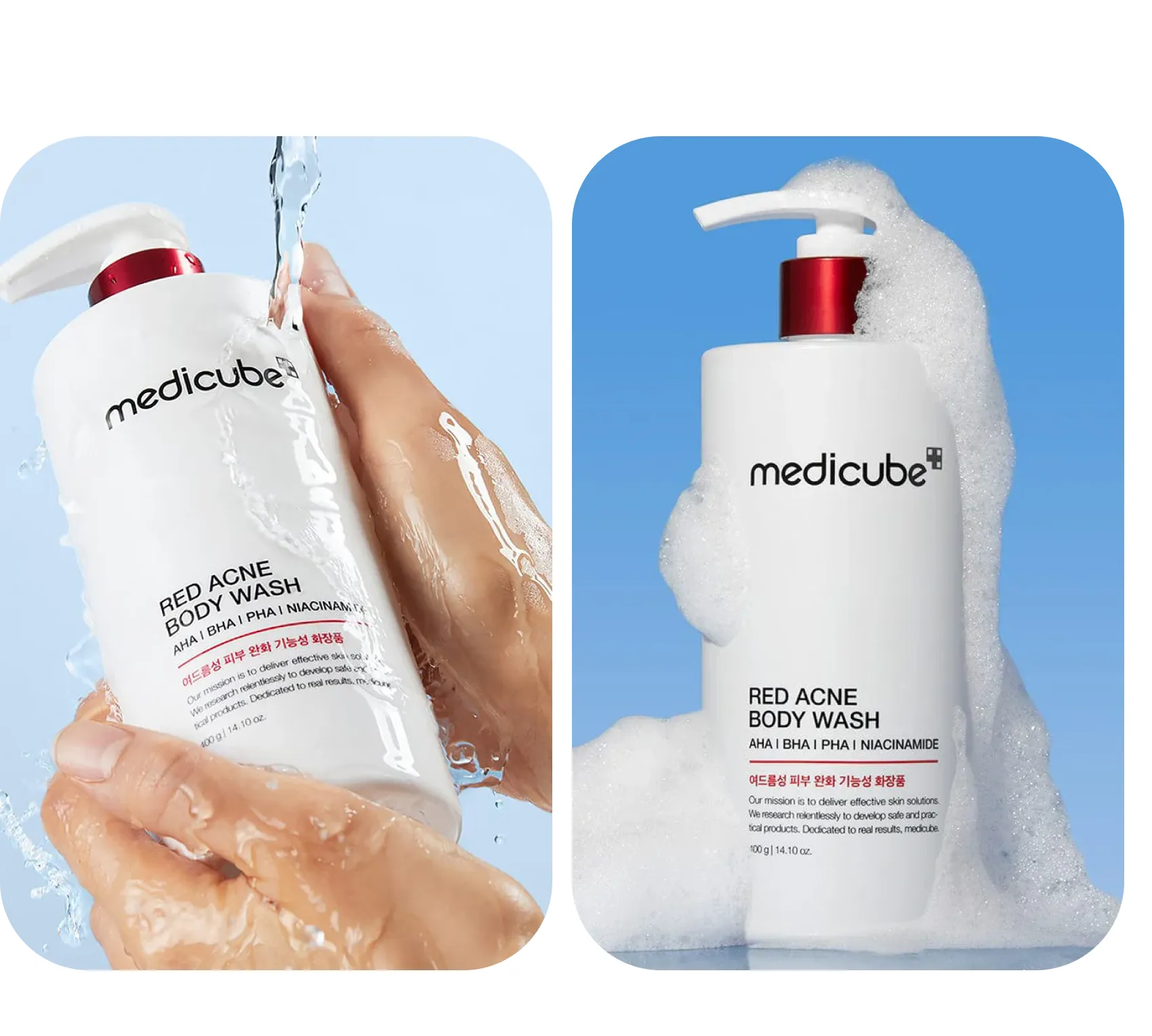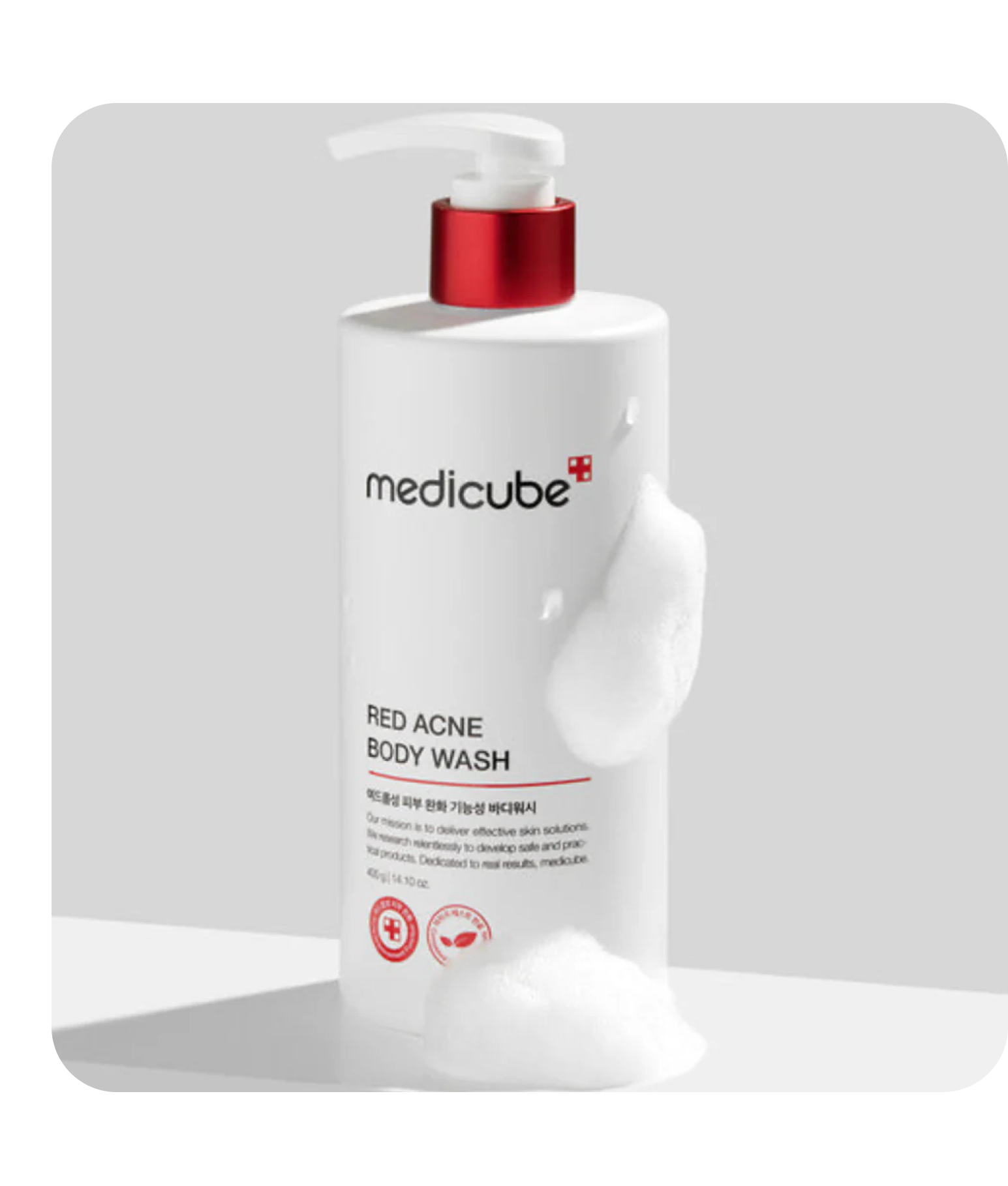 O Medicube Red Acne Body Wash 2.0 é um sabonete líquido corporal desenvolvido especialmente para a limpeza eficaz da pele com tendência à acne. Sua fórmula ajuda a remover impurezas, excesso de oleosidade e resíduos acumulados, deixando a pele limpa sem causar ressecamento excessivo.