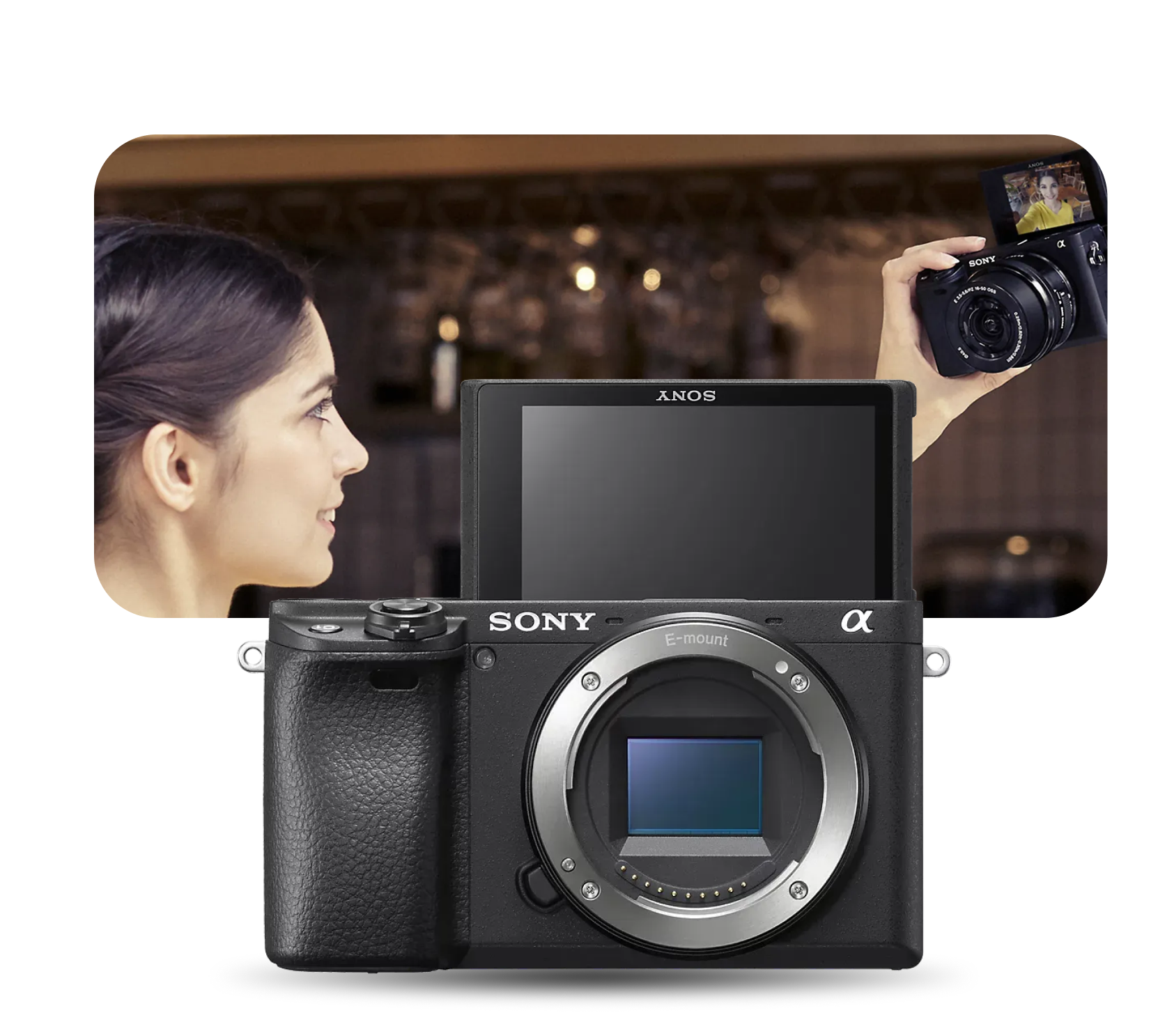 - Tela sensível ao toque LCD inclinável em 180°, facilitando a captura de selfies e fotos em ângulos altos e baixos.