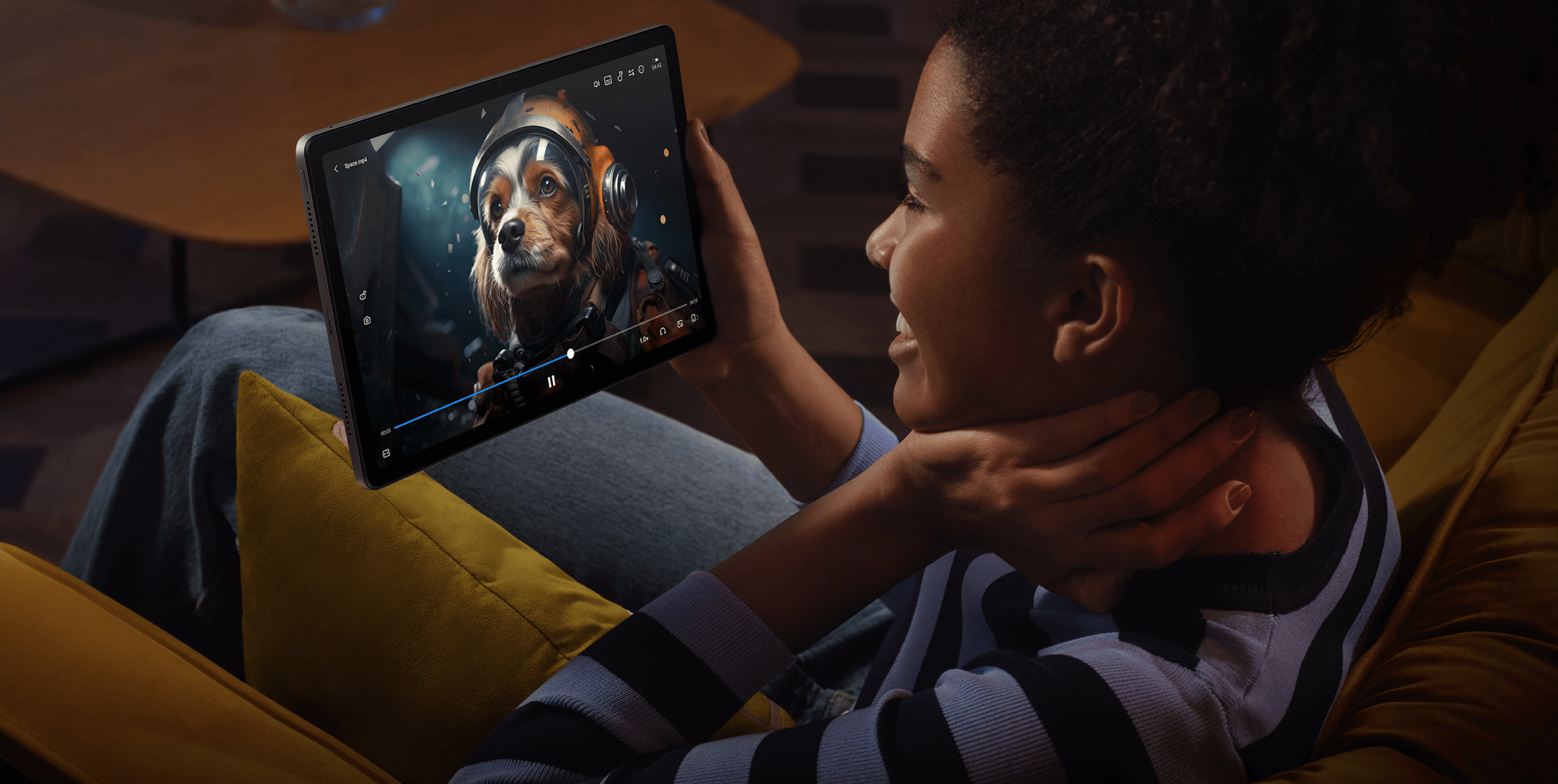 Os quatro alto-falantes proporcionam um som envolvente extraordinário, garantindo uma experiência imersiva semelhante à de um sistema de cinema em casa.