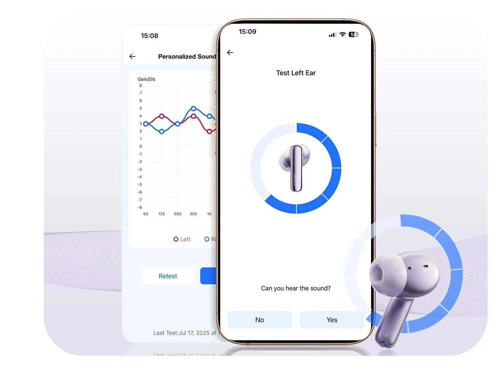 Equipados com cancelamento ativo de ruído adaptativo de até ~56 dB, reduzem eficientemente os ruídos do ambiente. Os microfones com IA garantem chamadas mais nítidas, mesmo em locais barulhentos ou ao ar livre.