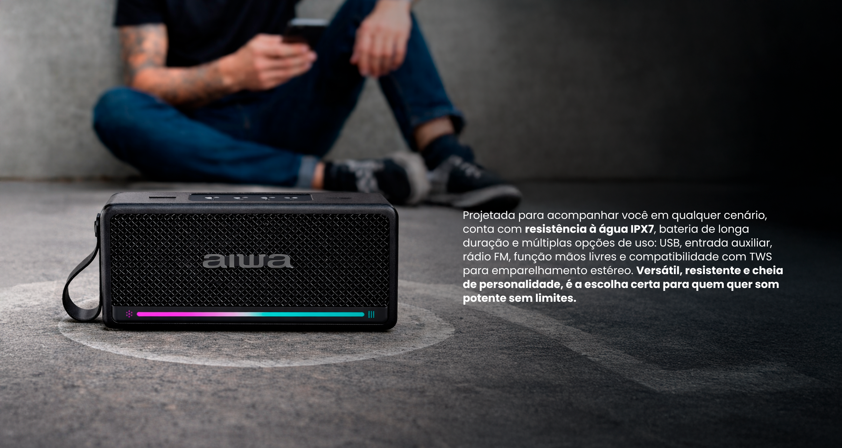 Speaker Aiwa AWQ5 200 watts P.M.P.O com Bluetooth USB Auxiliar - Preto