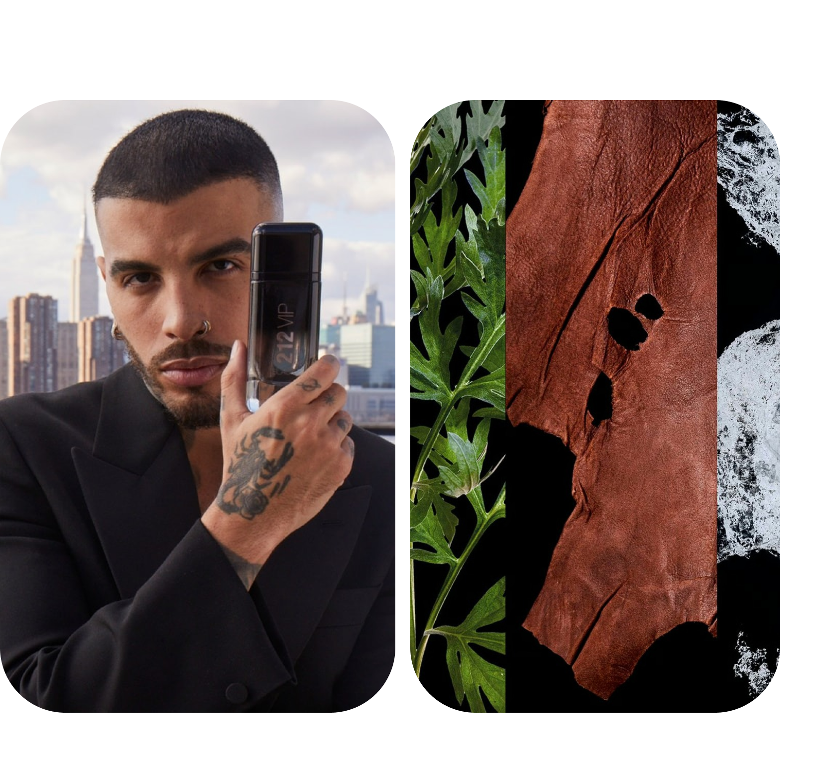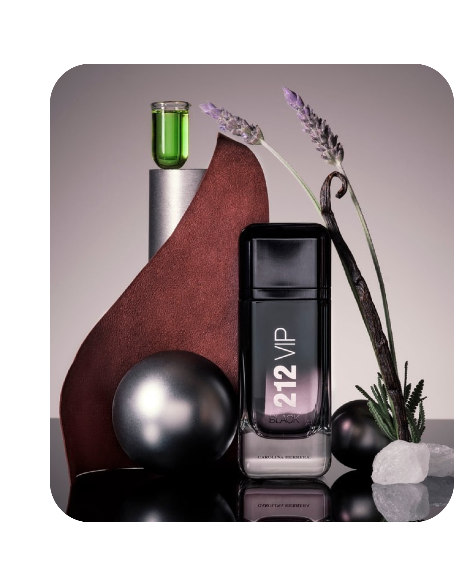 212 VIP Black é uma fragrância intensa e envolvente que explora o contraste entre a força do absinto e a delicadeza da lavanda, criando uma composição ousada, confiante e marcante. Sua abertura impactante evolui para tons profundos de almíscar escuro e baunilha, resultando em uma execução sedutora, suave e poderosa.