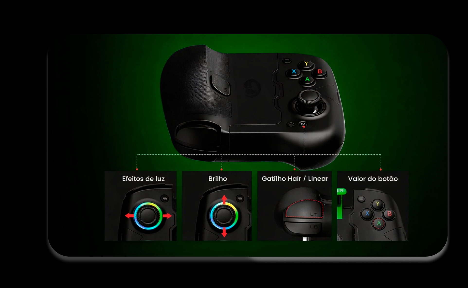 Com opções de gatilhos duplos, controle refinado e ampla personalização, o usuário pode adaptar o controle ao seu estilo de jogo. O botão M multifuncional centraliza comandos avançados, e as melhorias via app GameSir elevam a experiência, unindo controle total, desempenho e praticidade em um único dispositivo.