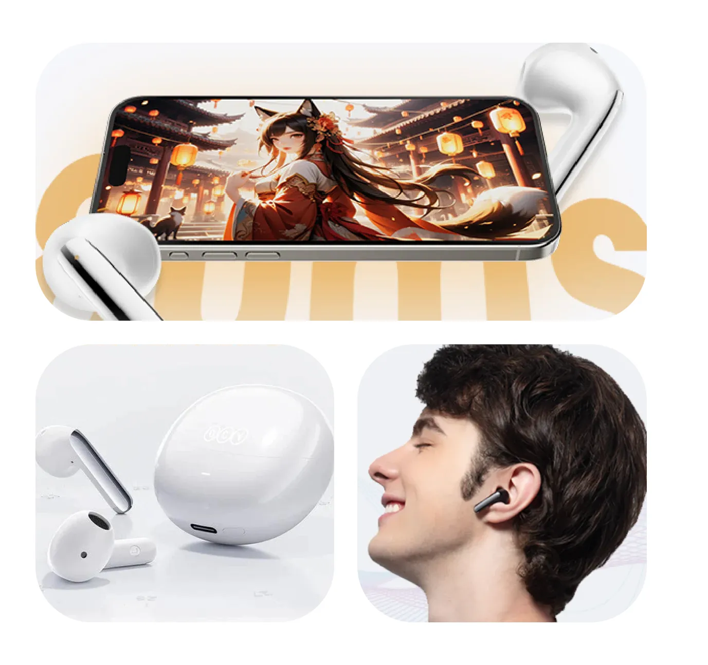 Os QCY AilyBuds Pro oferecem cancelamento ativo de ruído adaptativo (ANC), que se ajusta ao formato do ouvido para uma experiência sonora mais imersiva. Compatíveis com áudio Hi-Res e codec LDAC, entregam som detalhado, com excelente definição para músicas, vídeos e podcasts.
