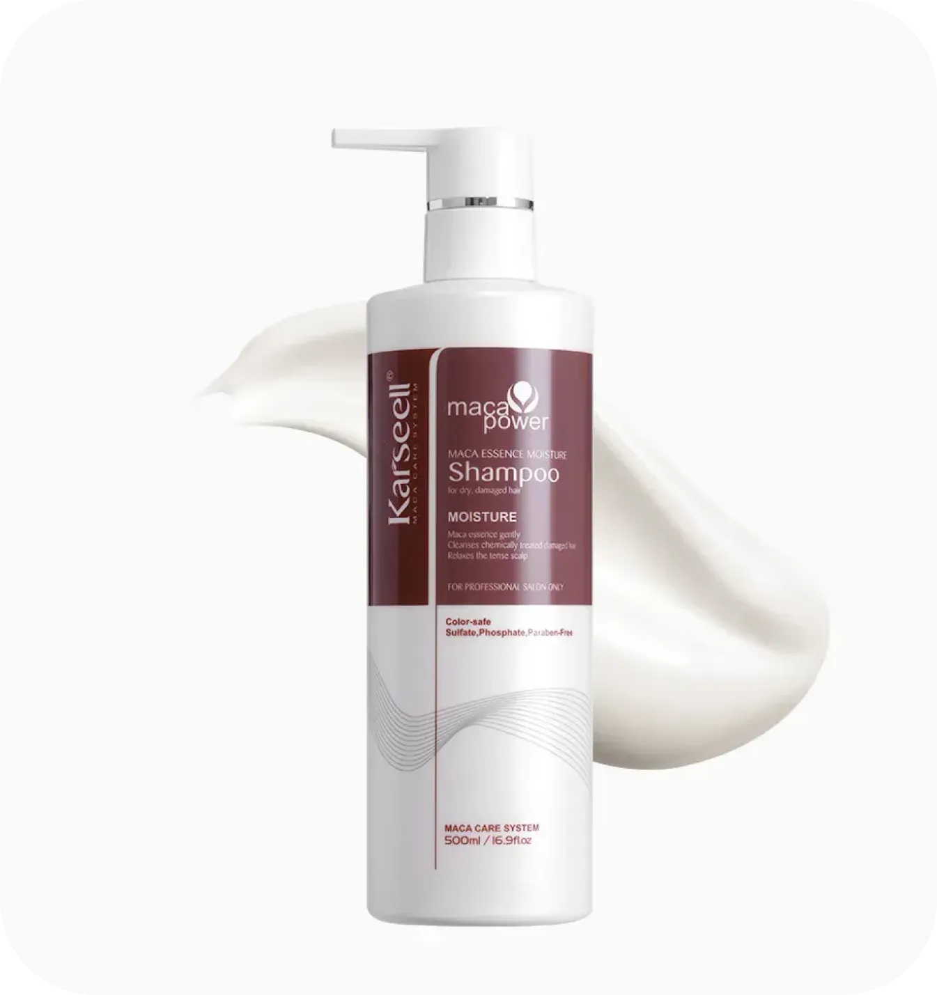 Indicado para uso profissional e doméstico, o Karseell Maca Essence Moisture Shampoo proporciona uma experiência de salão em casa. Aplicado nos cabelos úmidos e massageado suavemente, promove fios mais macios, nutridos e com brilho duradouro, oferecendo um tratamento completo de hidratação e proteção capilar.