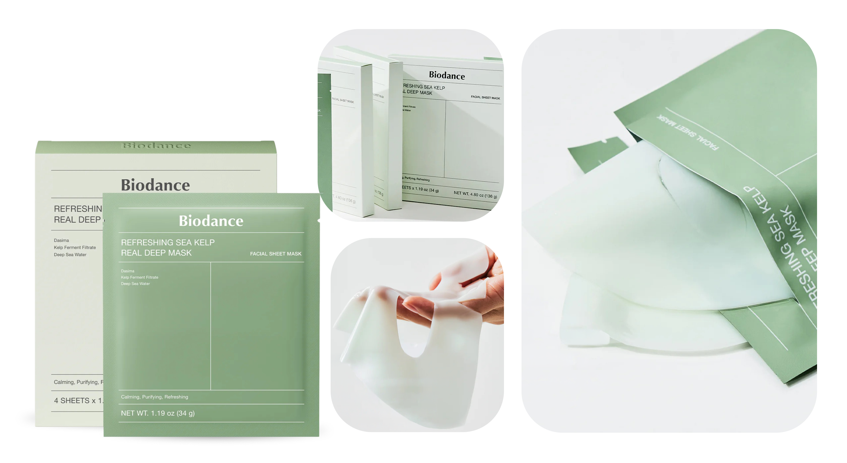 Máscara Facial Biodance Refreshing Sea Kelp Real Deep Mask - 4 Unidades