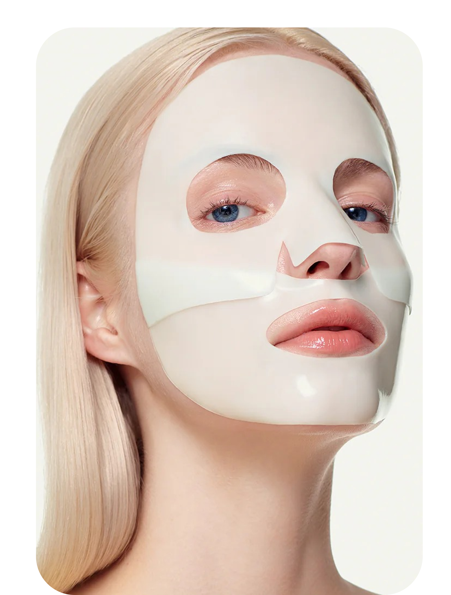 Utilize as áreas dos olhos e da boca da máscara nas laterais do nariz, abaixo dos olhos, no pescoço ou em qualquer região onde deseje hidratação e firmeza adicionais.