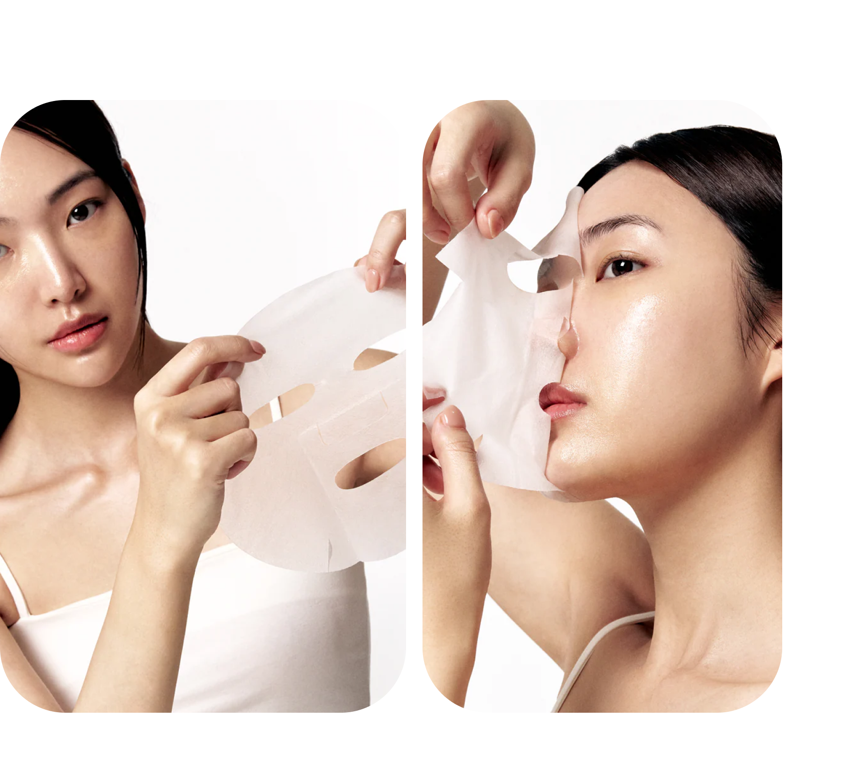 Passo 2 Após 10–15 minutos, remova a máscara e dê leves toques para auxiliar na absorção da essência restante.