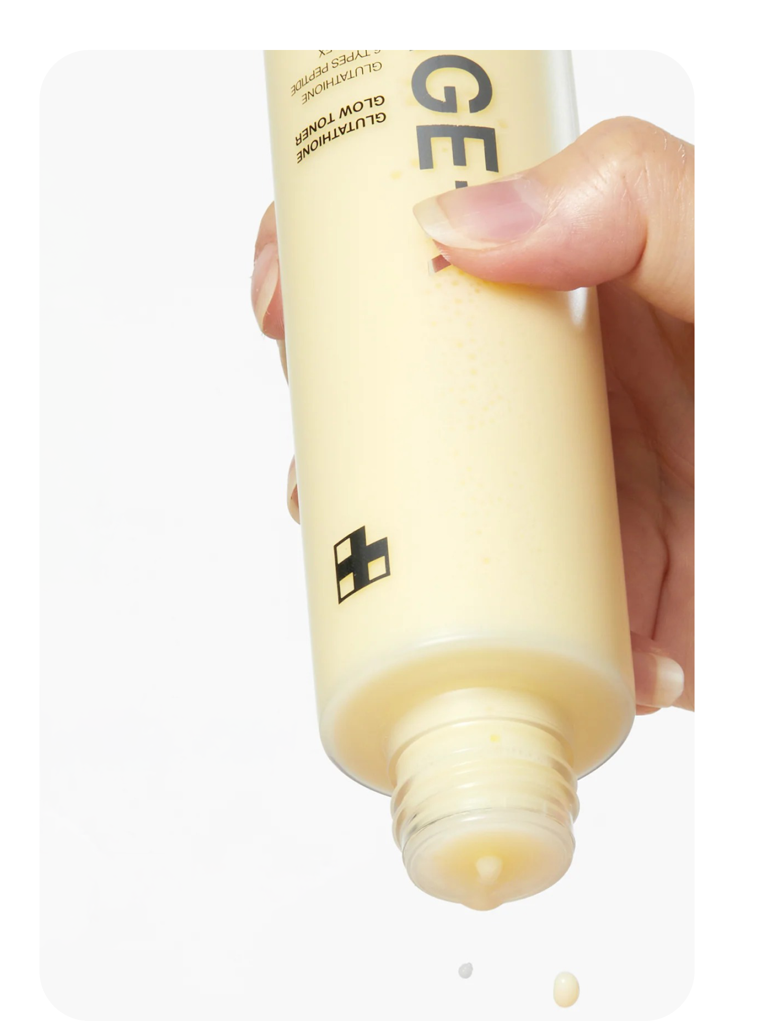Tônico de dupla camada para hidratação profunda: Experimente a sinergia da camada de essência com Glutationa e da camada de creme com Peptídeos para intensificar a luminosidade da pele e alcançar um tom mais uniforme.