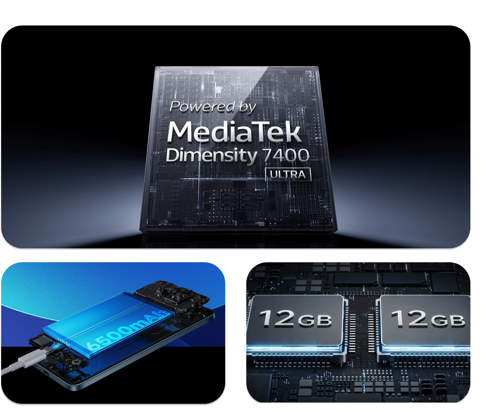 A nova geração do Dimensity 7400-Ultra incorpora um processo de 4 nm e uma arquitetura de oito núcleos de alta eficiência, com núcleos grandes que alcançam até 2,6 GHz. Oferece uma multitarefa mais eficiente, jogos e reprodução de vídeo mais fluidos e de longa duração, além de um desempenho estável mesmo após uso prolongado.