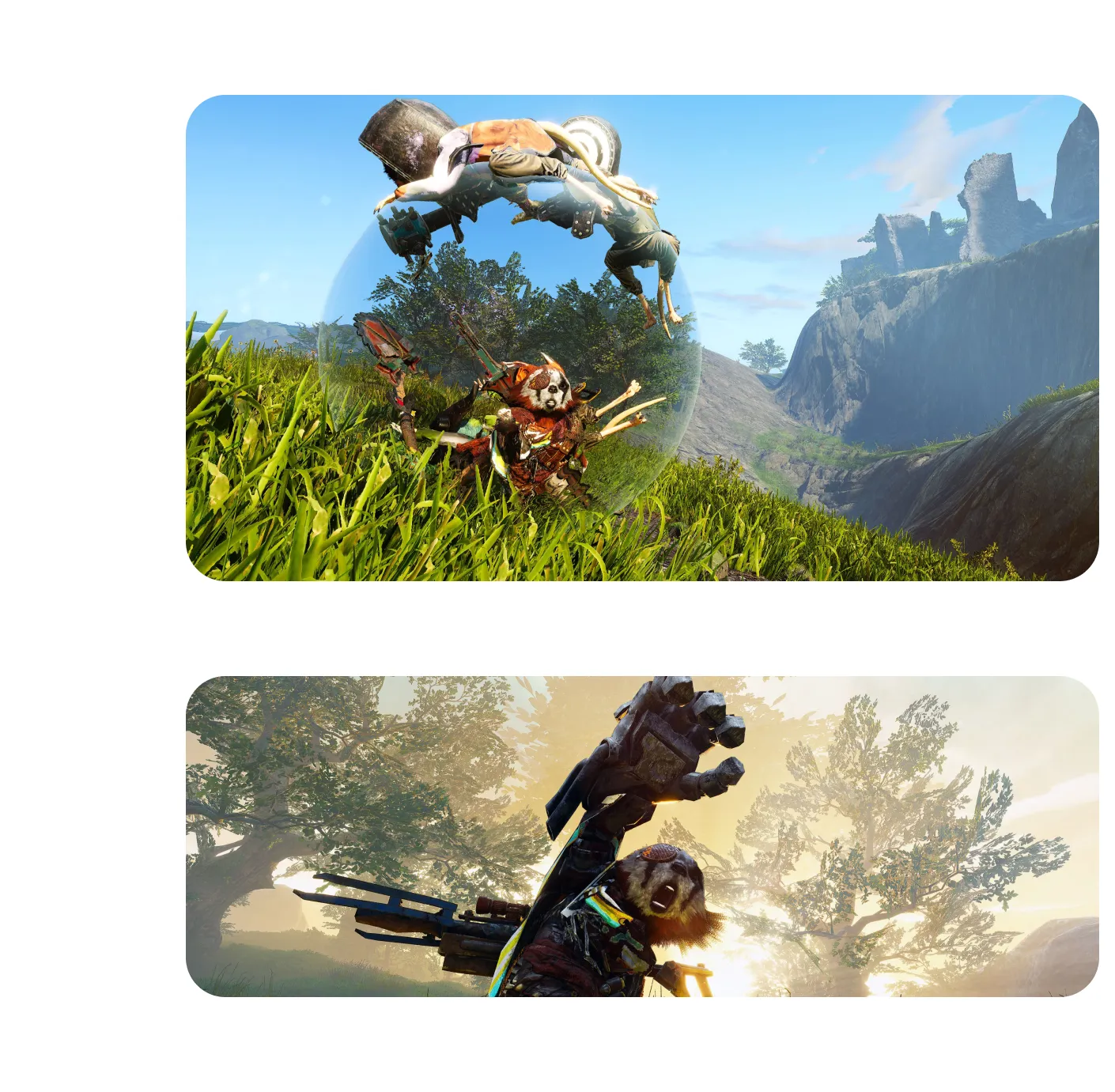 O jogo oferece um vasto mundo aberto que pode ser explorado a pé ou utilizando diferentes meios de transporte, como veículos, balões e até máquinas especiais. O ambiente inclui ciclo dinâmico de dia e noite e condições climáticas que influenciam a exploração e o comportamento dos inimigos. No PlayStation 5, Biomutant apresenta melhorias técnicas, gráficos mais detalhados e desempenho mais fluido, proporcionando uma experiência de exploração mais imersiva.